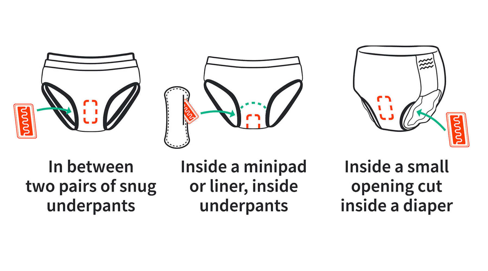 The Eclipse bedwetting sensor is completely sealed and waterproof so it can be inserted into diapers, pads or between two pairs of underwear. The sensor is made of conductive plastic, so it is safe and easy to clean. The sensor sends a short safe signal to the alarm base without the need for an extra uncomfortable transmitter.